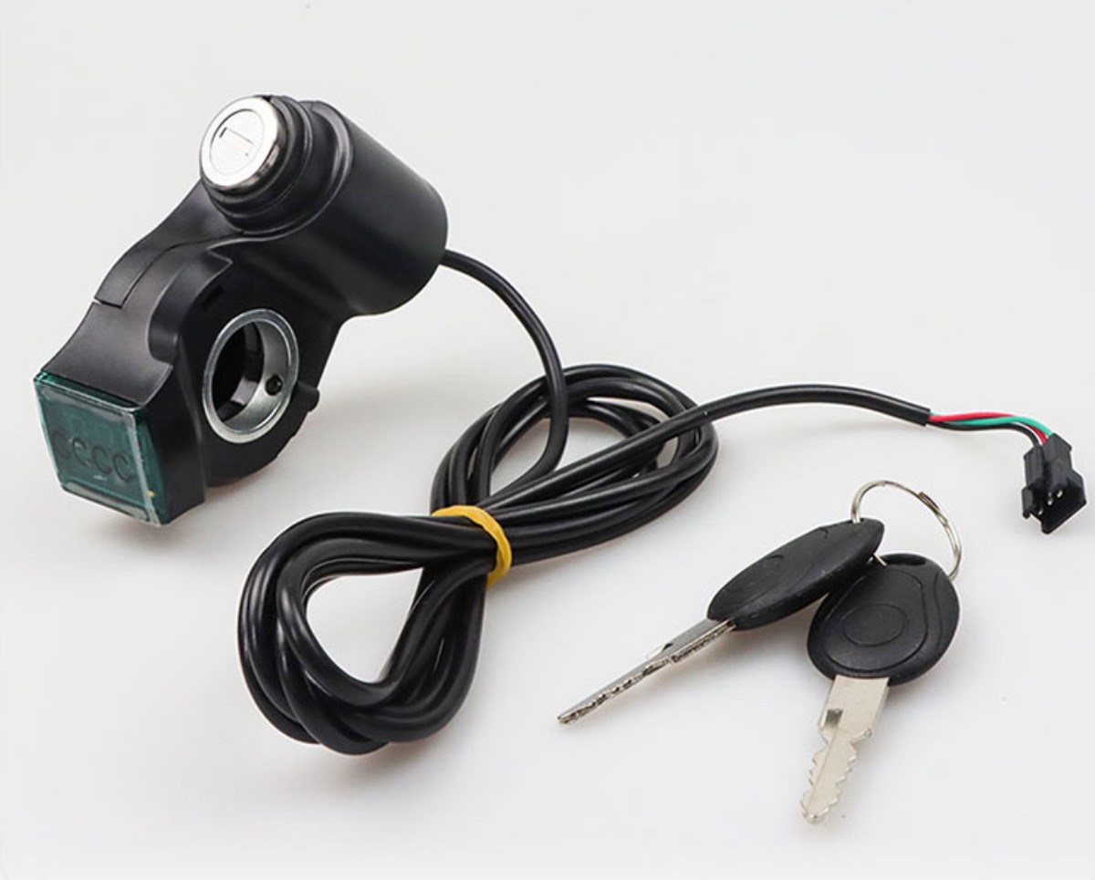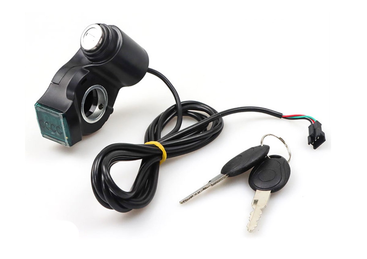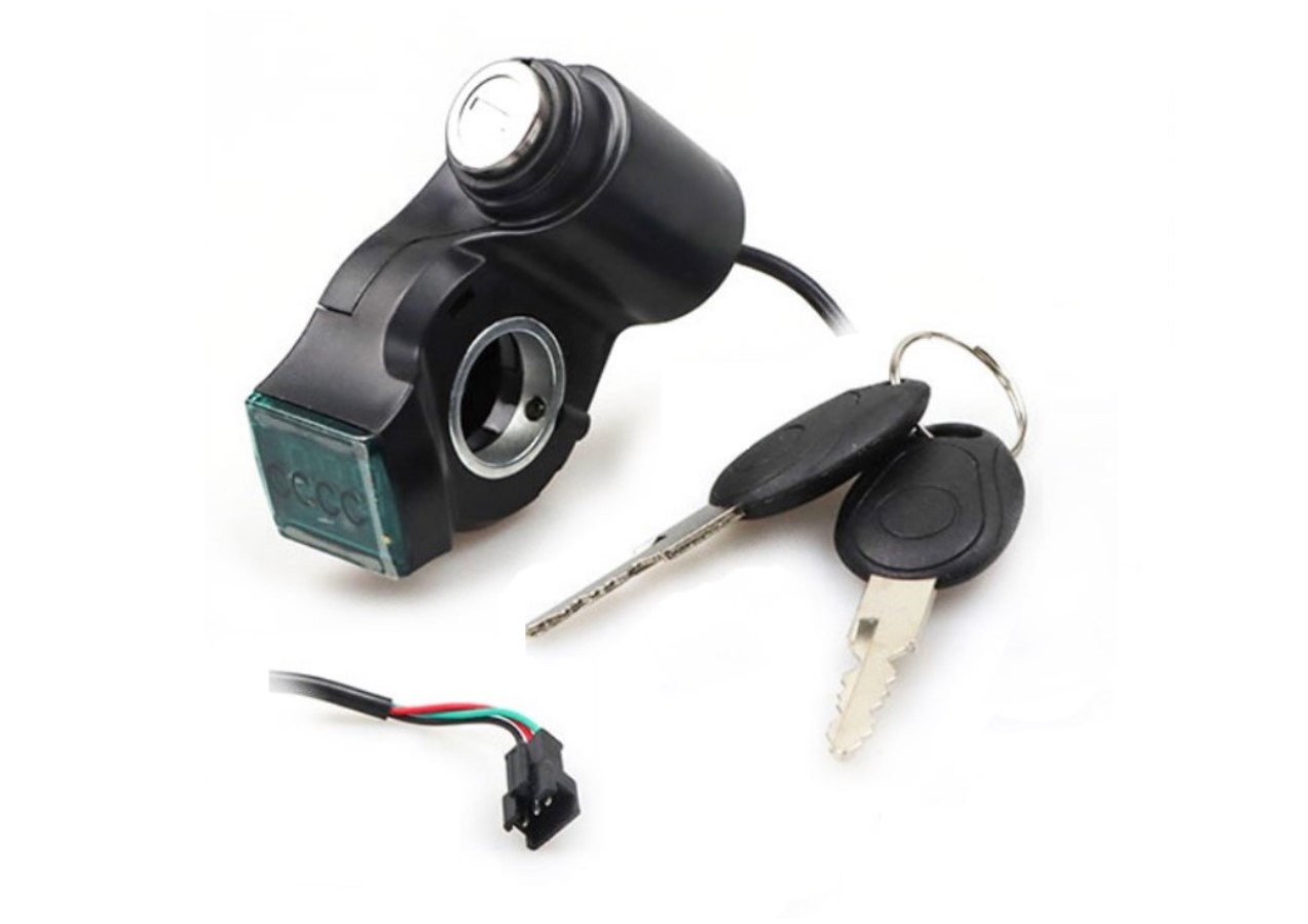 Оригинальный / совместимый замок зажигания (ignition lock) для электросамокатов Kugoo M4, M4 Pro и Kirin M4 Pro . Оснащен 3-pin разъемом для подключения к контроллеру. Устанавливается на руль диаметром 22.2 мм . Корпус из ABS-пластика. В комплекте 2 ключа. Простая установка "plug-and-play".
