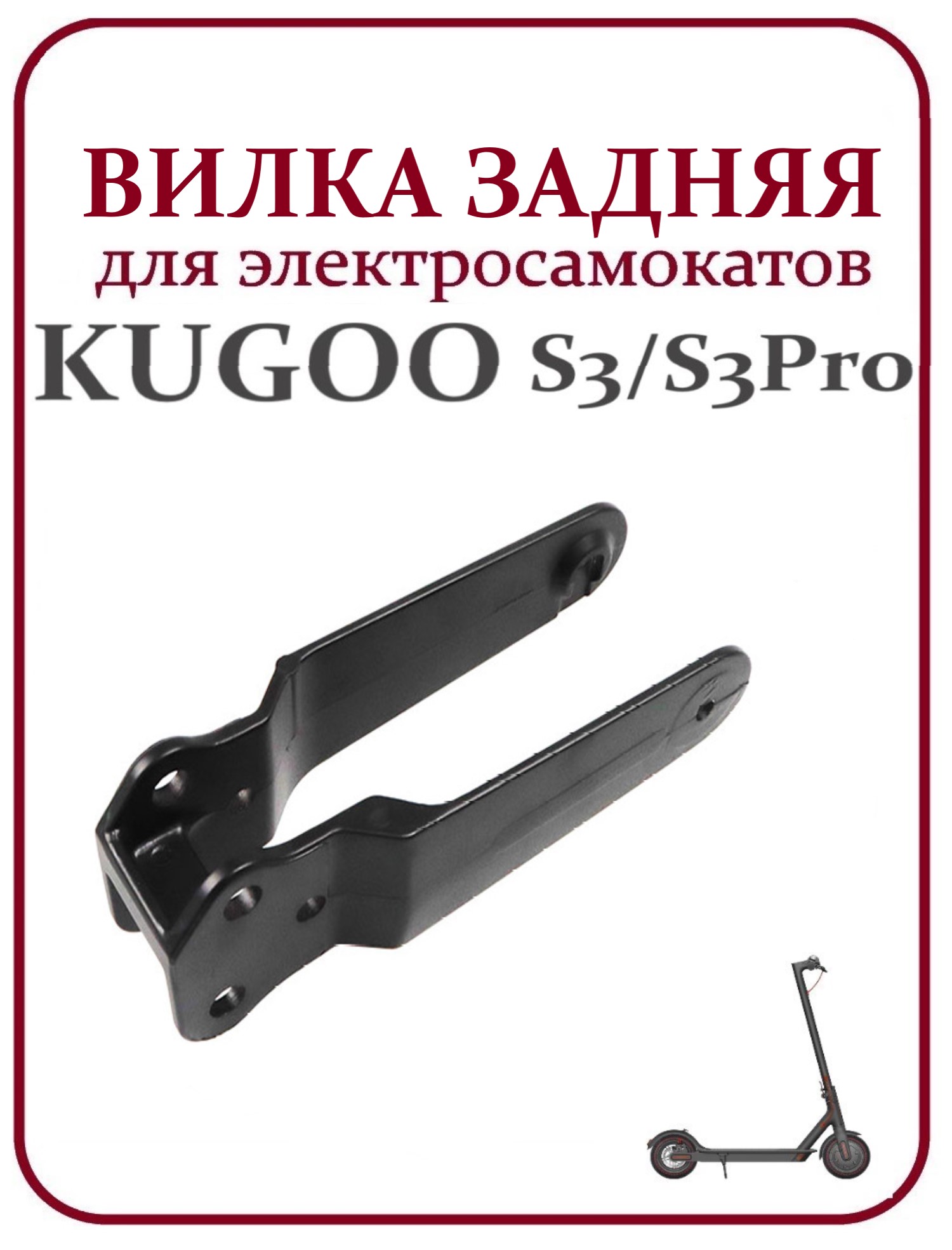 Оригинальная задняя вилка для электросамокатов Kugoo S1, S2 и S3. Размер под колесо 8.5 дюймов . Изготовлена из прочного металла. Предназначена для замены деформированной или поврежденной детали, восстановления геометрии задней подвески и правильного положения колеса .